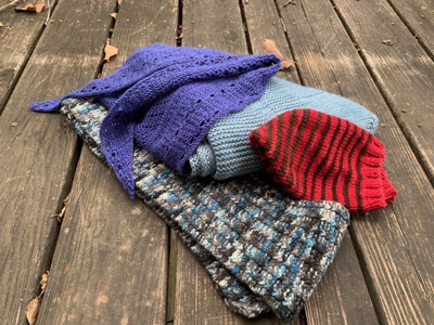 Ravelry and have a fondness for making scarfs, hats, and shawls. Currently I'm working on finding/making larger shawls. There's also a blanket off in the corner that, regardless of being the largest single item I've made, was one of the fastest knits I've done.